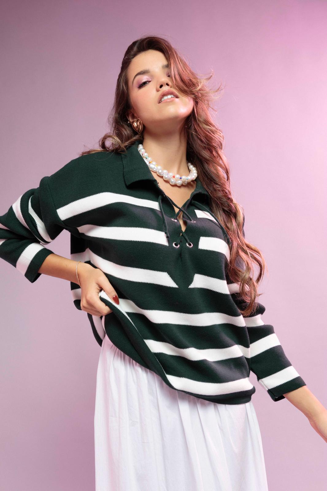 Camisola de malha com riscas.
